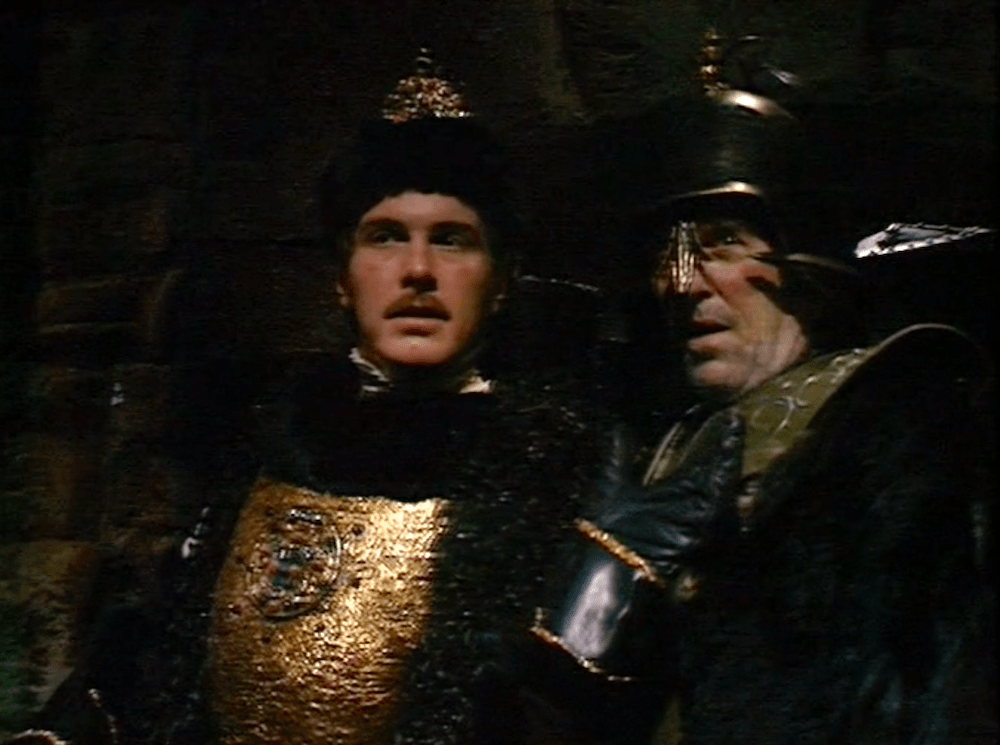 Ribos, the world they emerge into, is beautifully drawn by writer Robert Holmes and the set and costume designers. Holmes specified the medieval Russian premise and the designers apparently watched Eisenstein’s ‘Ivan the Terrible’ to get the look and feel. Whilst theatrical, the sets are effective, as is the dark, winter setting. Through the script, we are artfully told about its religion, level of development, climate, seasons, wildlife and society. It is a world that is a long away from the levels of development that would allow alien contact, yet we see it through the eyes of 3 sets of highly developed alien outsiders. It is a world without even a basic understanding of the stars and planets or i’s place in the universe, the townspeople of Shur even knowing little of the other settlements on Ribos.