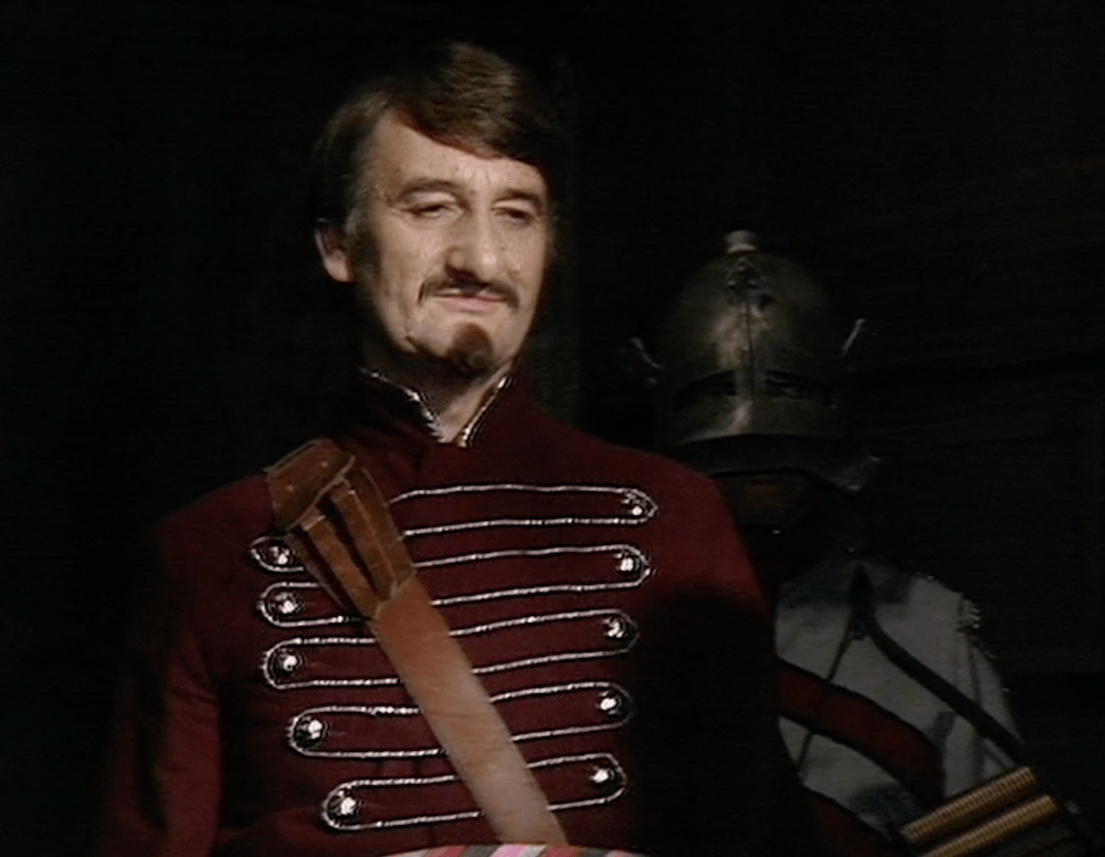 There isn’t much more to say about this story other than that really. It is mainly enjoyable because Peter Jeffrey as Grendel simply believes himself to be the star villain of the show – not the Black Guardian or the Master or any of those inter-galactic super-villain types, just a ‘complete count’ from the rural backwater of Tara. In his own world he is as evil and scheming as those plotting universal domination. He even departs in style diving from the ramparts into the castle moat and away with the wonderful last line ‘Next time I shall not be so lenient’! Somewhere on Tara he’s having a great time living his own black-hearted, swashbuckling, mighty-nosed adventures, plotting to get his lands back and his seat on the throne of Tara and revenge on the long-departed Doctor.