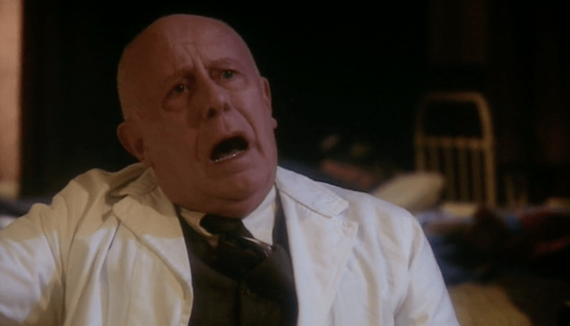 You don’t need to know this to understand the characters though, it is enough to know that Millington has a guilty secret with regard to Judson. According to Ian Briggs, Judson’s disability was a metaphor for Alan Turing’s treatment as a gay man. Judson though is much more unpleasant, sly character than Turing – even before his possession by Fenric he is pretty unlikeable – about 8 on the Stahlman scale. Dinsdale Landon is really very good – firstly as the snappy academic, railing against ‘Nanny’ and later as Fenric – taking pleasure in his revenge in a very human way.